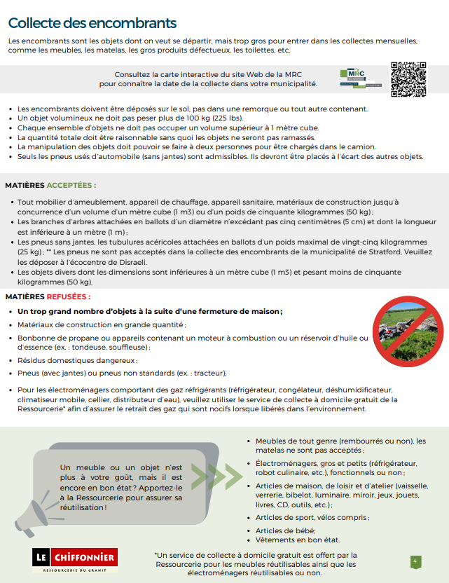 Informations matières acceptées- Collectes des encombrants